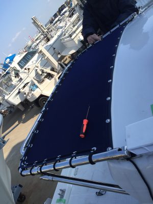 FX24EZのアフトオーニングの取付作業をしています。