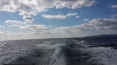 横浜から観音崎までは、ブランケットで風も穏やかで27ノットで航行。観音崎から洲崎までの東京湾口は、うねりと風が上がり始めており22ノットで航行。