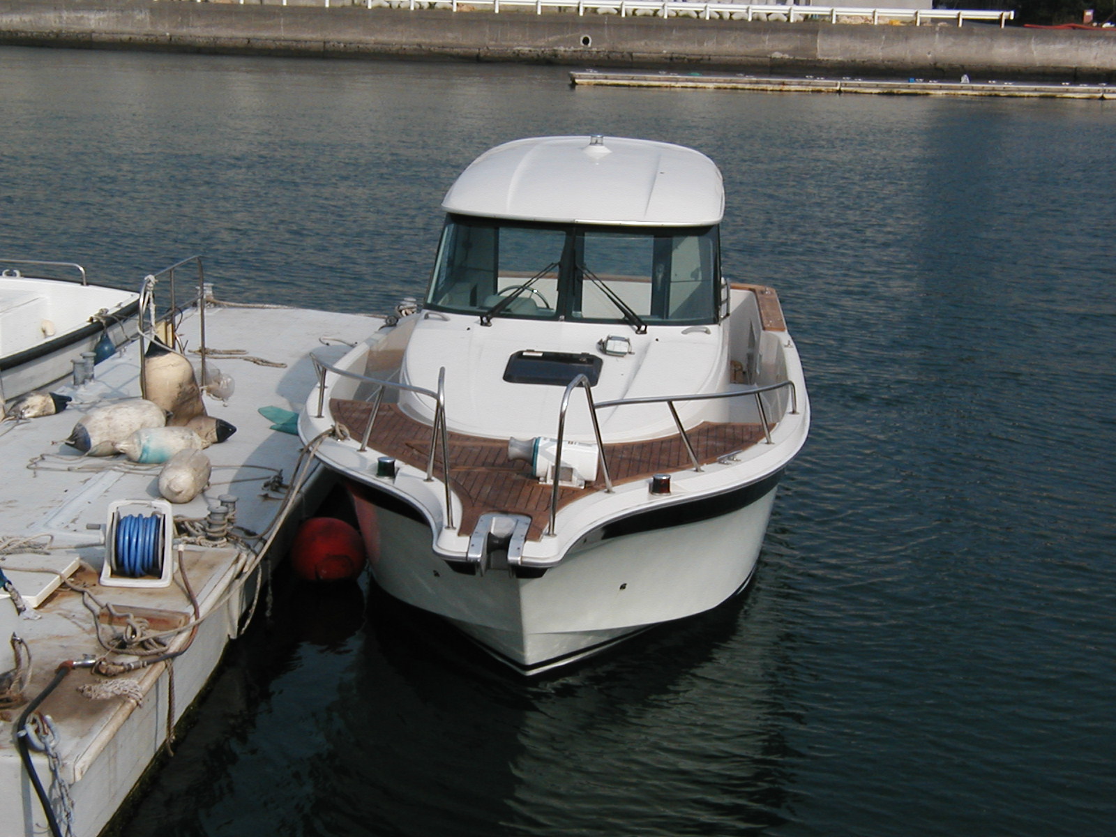 EL29広いアフトデッキにチークを施し ハルにはウレタンのライン塗装にてウッドの風合いもより引き立たせました。 (1999年~2006年まで生産された2基掛けのシャフト艇)