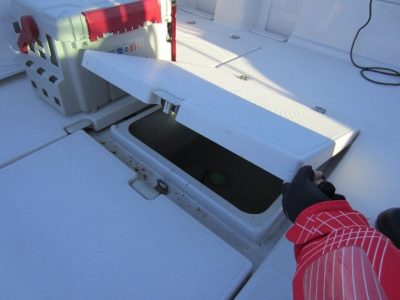 「EX30B」のデッキにある「大型イケス」の片側のハッチを開けて