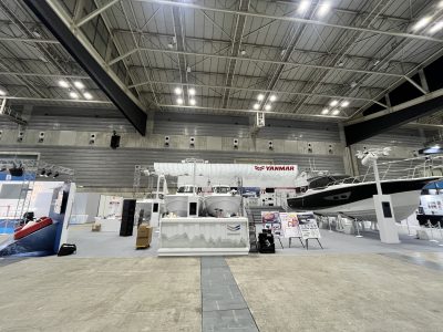JIBS出展艇では、乗り降りのしやすさを考慮し