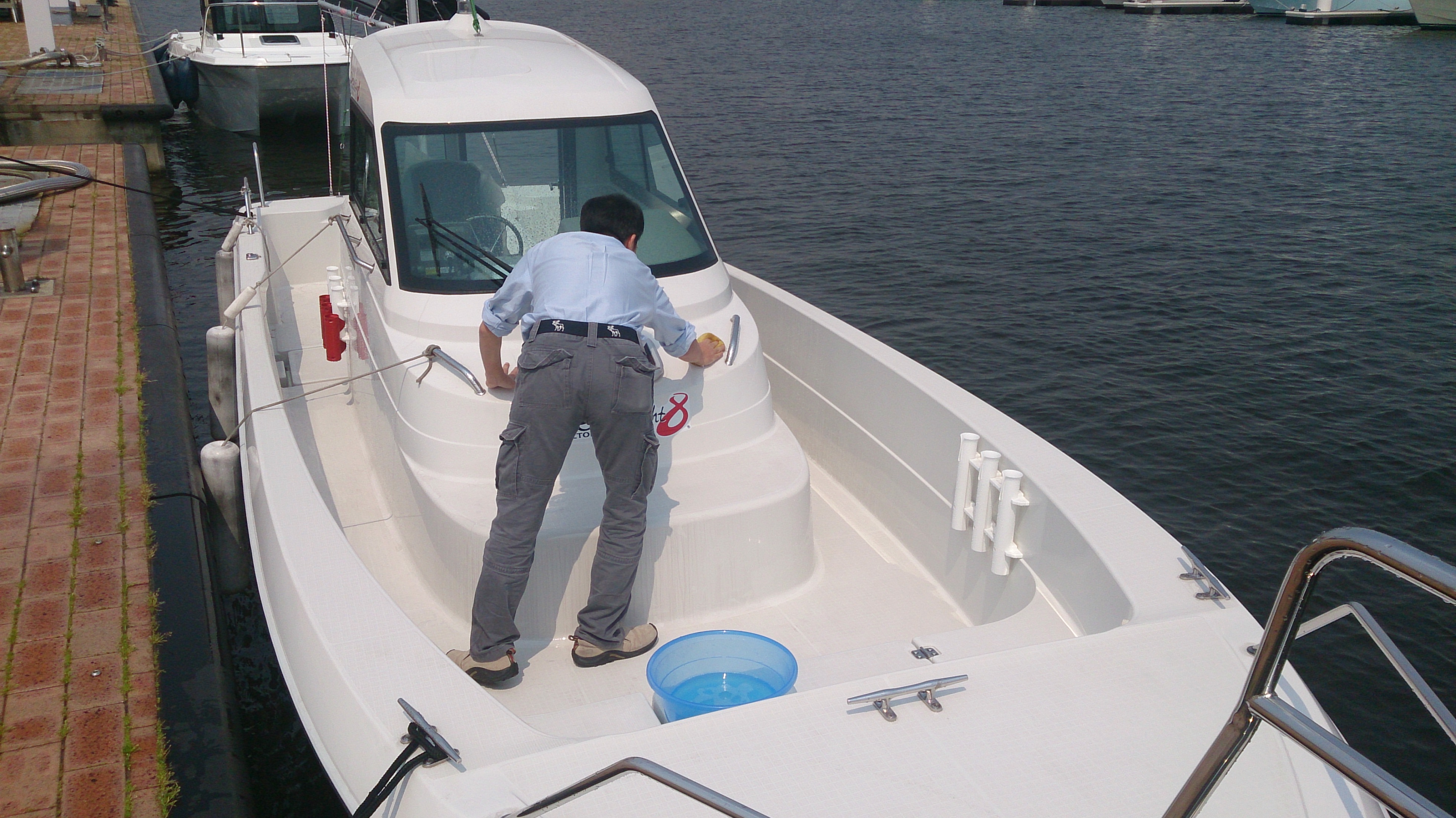 明日の本番に向けて、スタッフがボートをピッカピカ